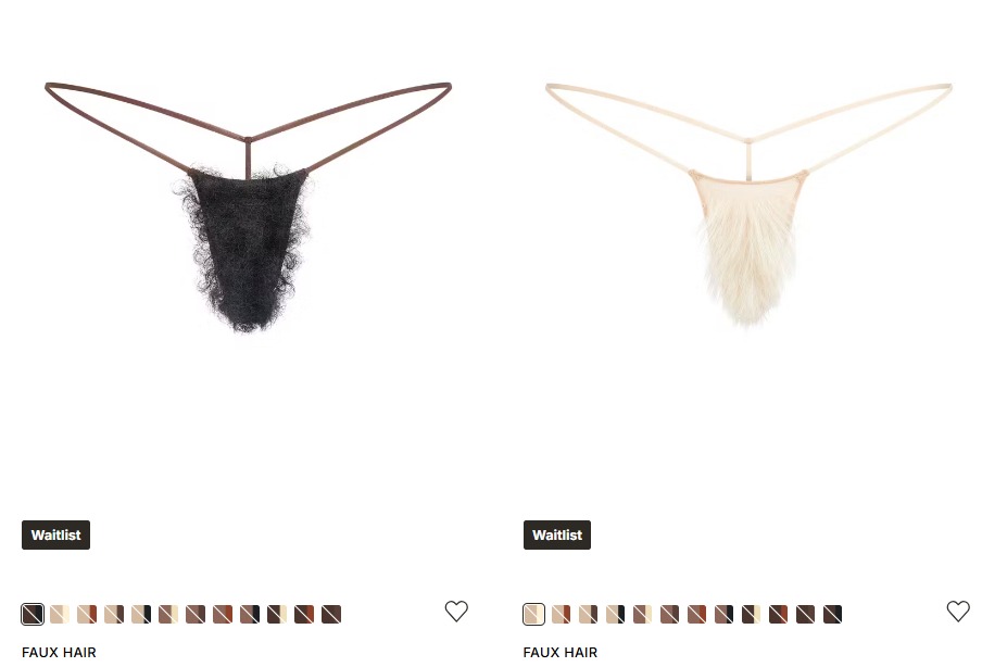 A marca descreve a novidade como “a calcinha mais ousada até agora”, e destaca: “Com a nossa nova e corajosa calcinha de cabelo falso, seu carpete pode ter a cor que você quiser”.