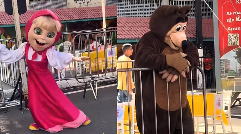 Manaus – Durante a faixa liberada na avenida Getúlio Vargas, no Centro de Manaus, um momento inusitado chamou a atenção do público e viralizou nas redes sociais. O personagem “Urso”, da animação Masha e o Urso, apareceu visivelmente desanimado enquanto acompanhava a personagem Masha, que dançava animada ao som de músicas infantis.