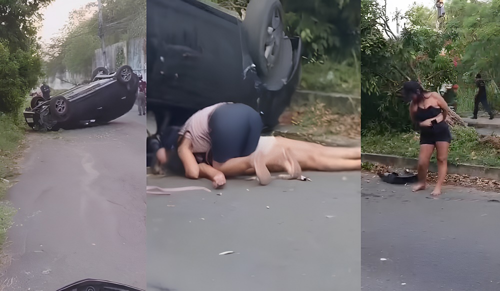 VÍDEOS! Mulheres deixam carro capotado com sinais de embriaguez na zona norte de Manaus